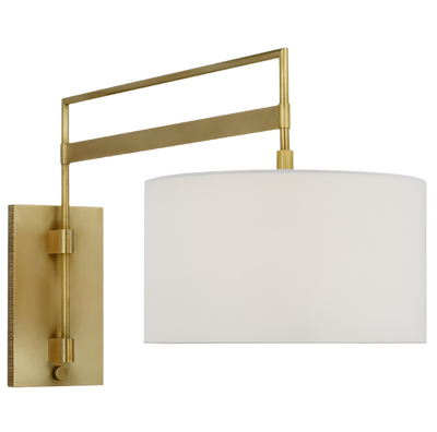 Chic and functional, the Gael by Ray Booth showcases the timeless combination of metal and linen explored through a rectangular mount and circular barrel shade. Designed with a rotating mount that allows for precise and flexible light placement, the wall fixtures come in a range of sizes that can hang effortlessly over sofas and chairs or small tables.
