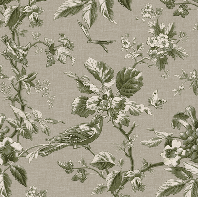 Michigan Bird Toile in Olive Fabric Swatch