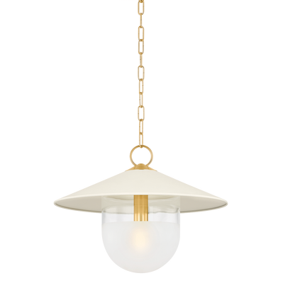 A modern update on factory lighting, Ressi combines easy geometric shapes with mixed materiality. From the clean lines of the soft cream shade to the chunky Aged Brass chain, this pendant feels fresh and approachable. The lower half of the shade is spot-etched to add a layer of diffusion, creating an atmosphere that is perfect in an entryway or above a dining table.