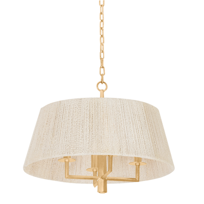 French Riviera finesse meets mid-century modernism in the Azar pendant. The large drum shade is wrapped entirely in Bleached Abaca cord, allowing light to shine through. Finished in Vintage Gold Leaf, the angular frame takes its cues from vintage iron lighting as it peaks out from under the shade. Available in two sizes with either 4 or 6 lights, Azar provides a sophisticated lighting experience.