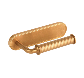 Inspired by industrial distillery tanks, this statement brass toilet roll holder features a bold oval backplate and intricate ridged detailing. Handcrafted in England, it elevates the everyday with exceptional craftsmanship.