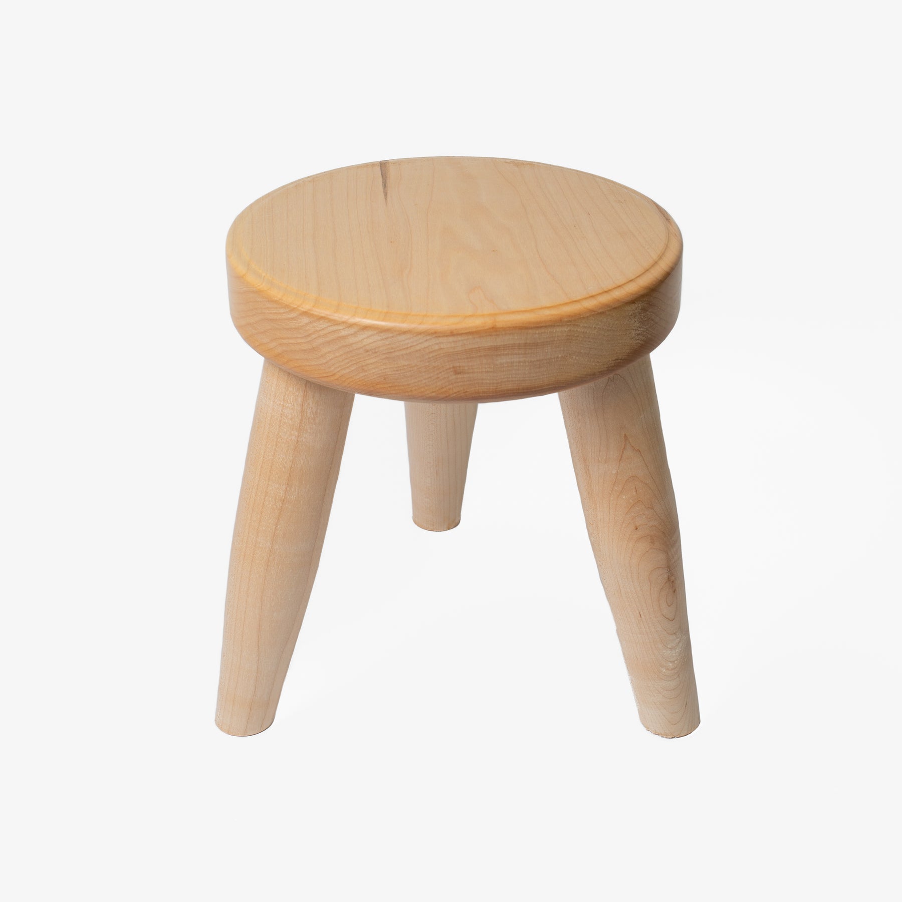 A classic, hand-crafted three-legged stool made from solid hard maple. Each piece is thoughtfully finished with buffed carnauba wax, highlighting the natural beauty of the wood. Perfectly sized for little ones or as a charming stand for a favorite plant, this piece brings both function and warmth to your home.