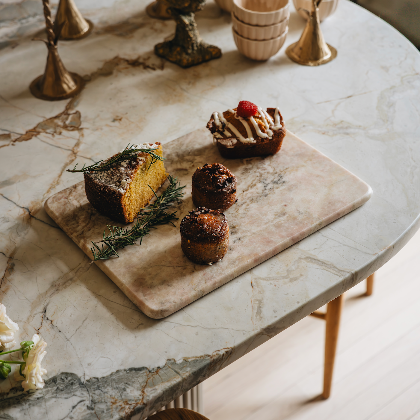 The beautiful Suki Marble Cutting Board is perfect for chopping ingredients, serving snacks and charcuterie, or as a decorative element when not in use. No matter how you use it, this piece will certainly add a level of elegance and charm to your kitchen.