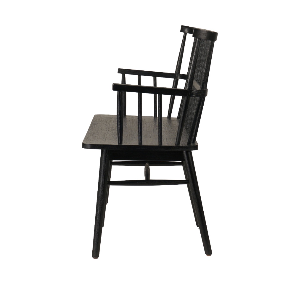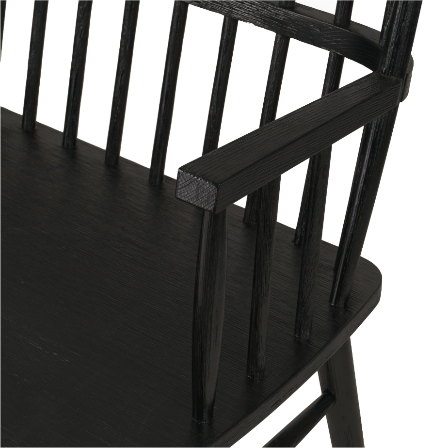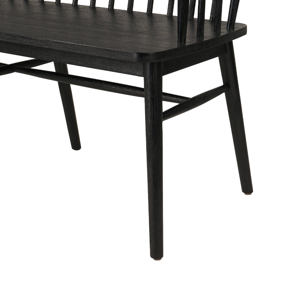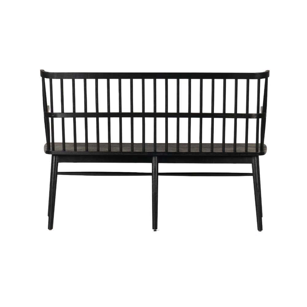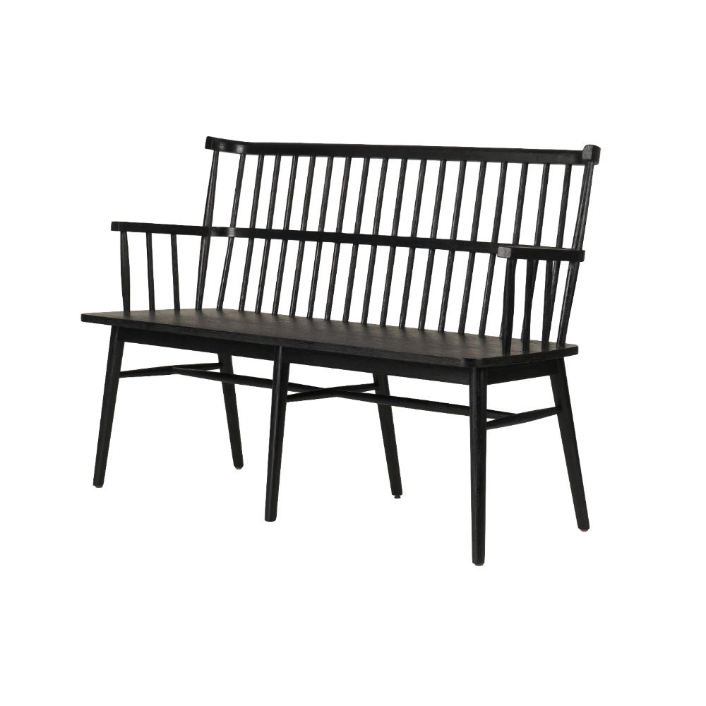 The Anthony Bench is a fresh take on the Windsor-style seating and has a sculptural silhouette and beautiful finish, highlighting the wood's natural luster.