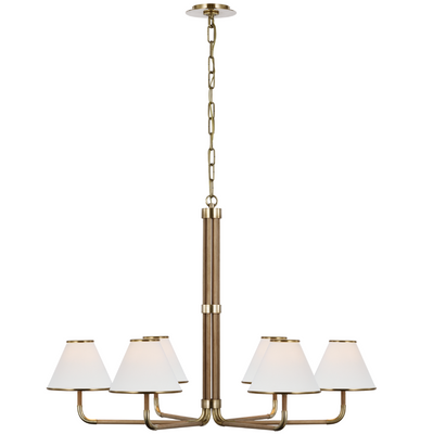 The Rigby series by Marie Flanigan showcases a linear design with elegant, contemporary refinement. The sconce, floor lamp, and various styles of chandeliers are all accented with unexpected natural oak with brass or ebony with polished nickel. All profiles feature single or multiple trimmed linen shades and will serve as novel conversation pieces for any space in the home.