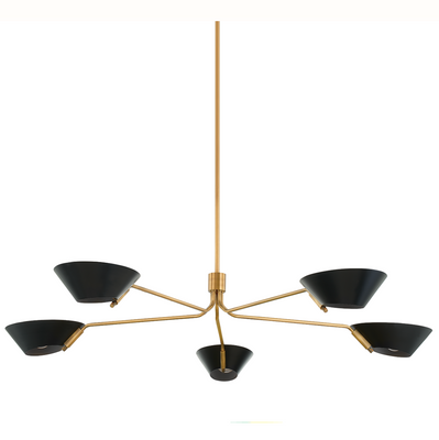 Sacramento makes a bold statement while keeping a low profile. Simple metal shades are mounted at the end of long, sweeping arms creating a design that is visually appealing without taking up a lot of space. With shades that are open at both ends, the wider opening at the top allows light to spread freely above while the narrower bottom opening funnels more direct light downward. Patina brass combines with either a soft black or soft sand finish to give the fixture a natural beauty.