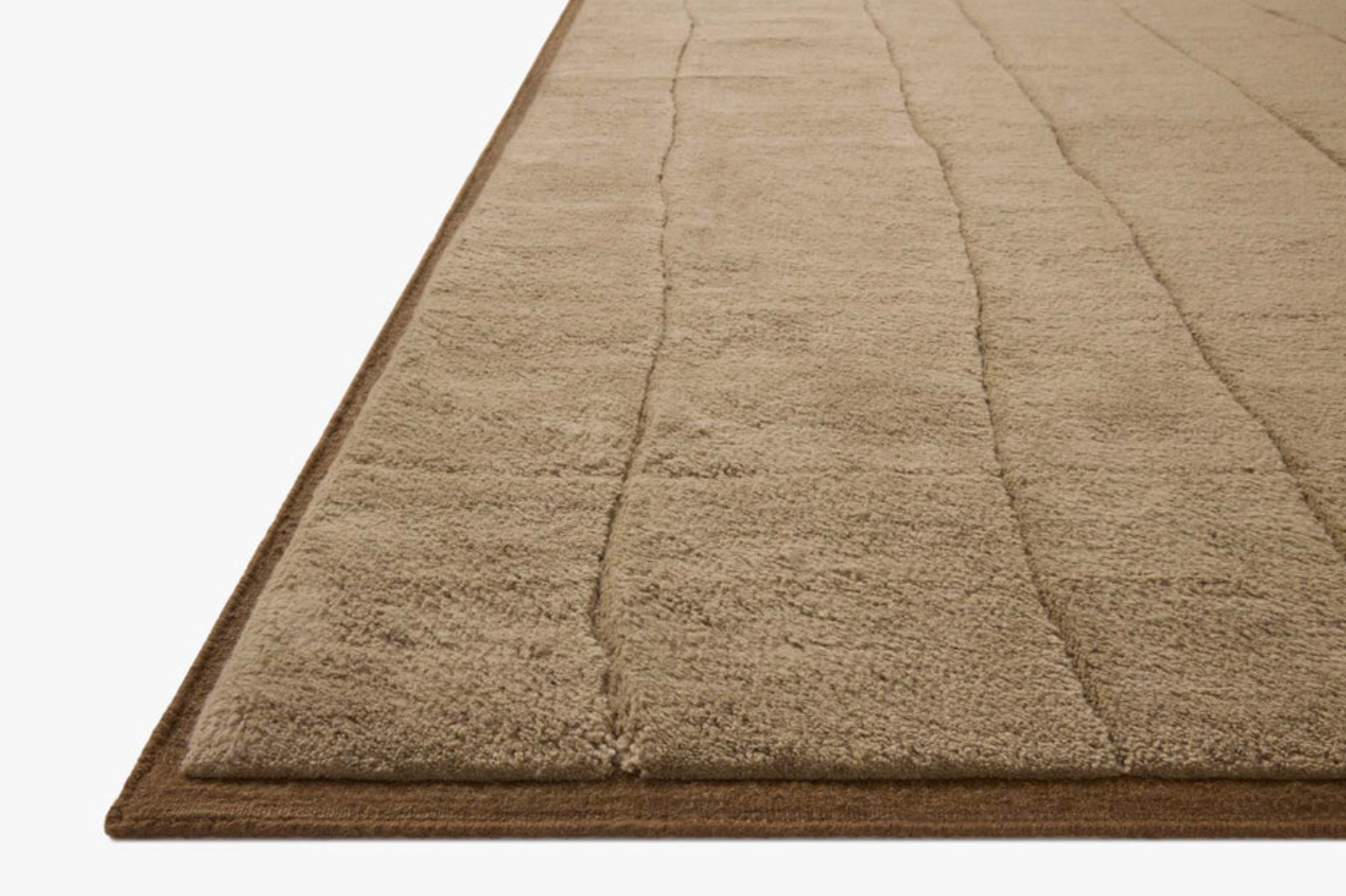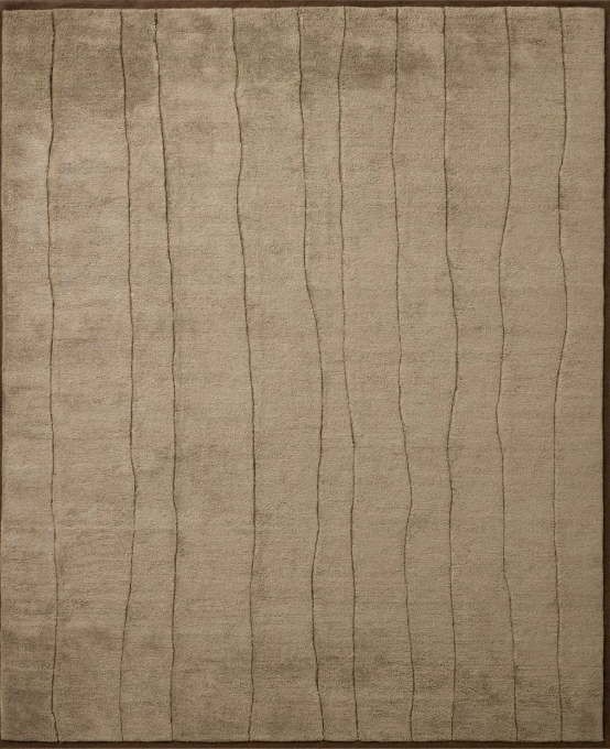 The Bracken Collection is an exceptionally plush area rug with organic, linear patterns made by drop-stitching, designed by Leanne Ford x Loloi. Available in creamy neutrals and rich earthy tones, Bracken is framed by a flatweave border that emphasizes the depth of the pile. This collection is hand-knotted in India and GoodWeave-certified, ensuring our commitment to ethical production and the support of weavers' communities. Due to the thick-cut wool, some shedding is expected; we recommend vacuuming frequently without a beater bar.