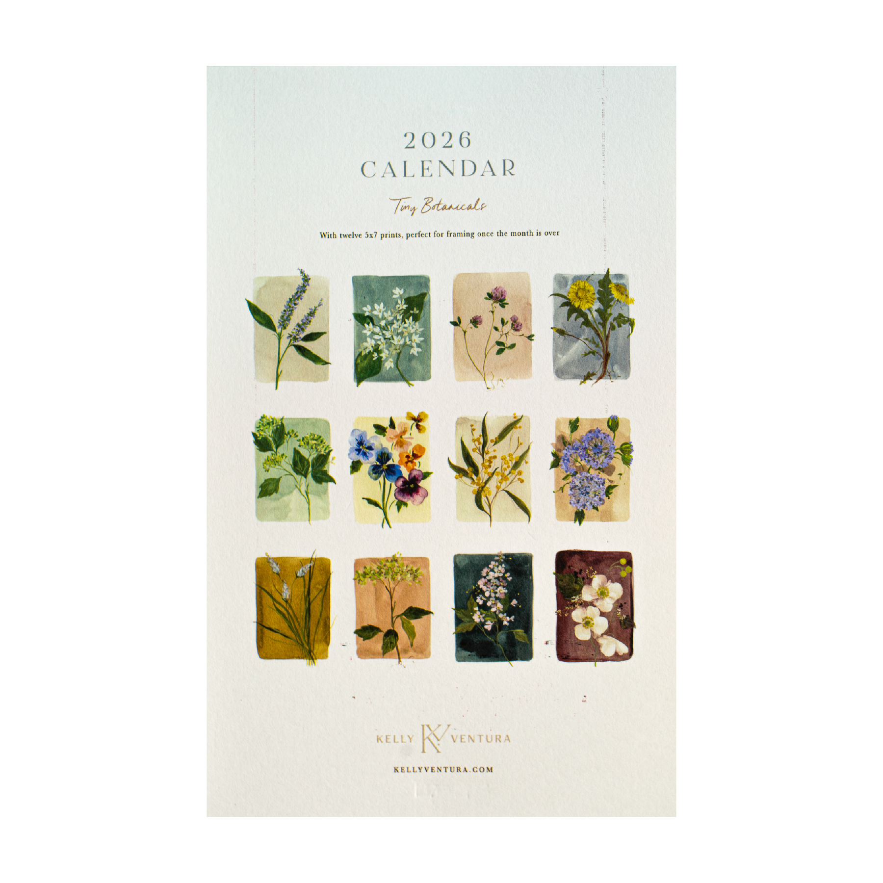 These 2026 Botanical Calendars from Kelly Ventura celebrates the beauty found in the small details. Each month features a delicate botanical painting—twelve in total—exclusive to this collection. When the month concludes, each page transforms into a 5x7 art print, ready to frame and enjoy.
