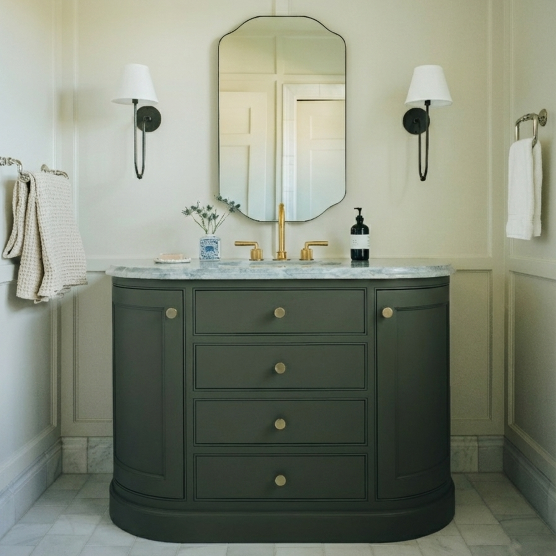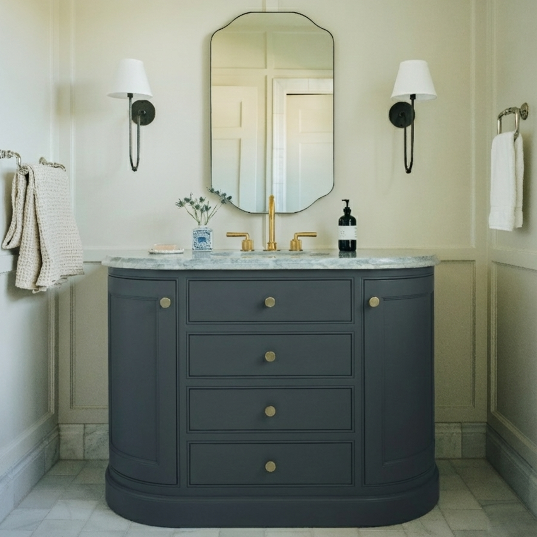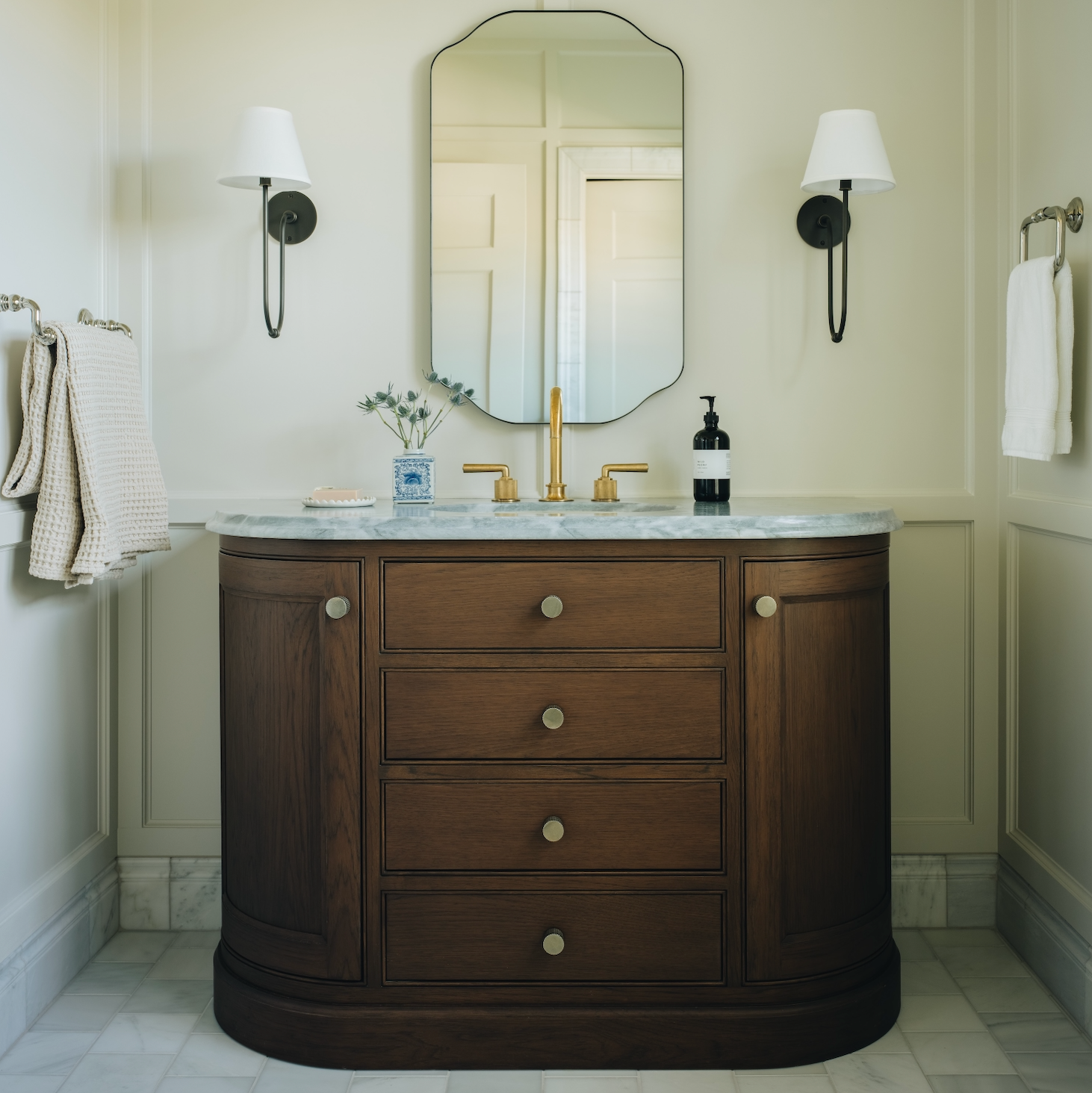 Defined by its rounded silhouette, the Glen Vanity serves as a stunning centerpiece in any bathroom. Available in a 48" size and available in all Stoffer Home Cabinetry Classic Line finishes, the Glen Vanity offers elevated craftsmanship and effortless versatility.