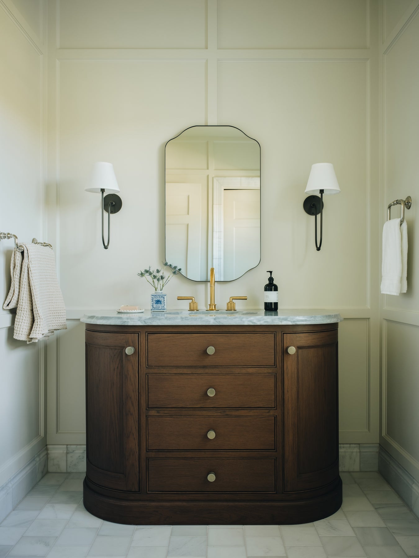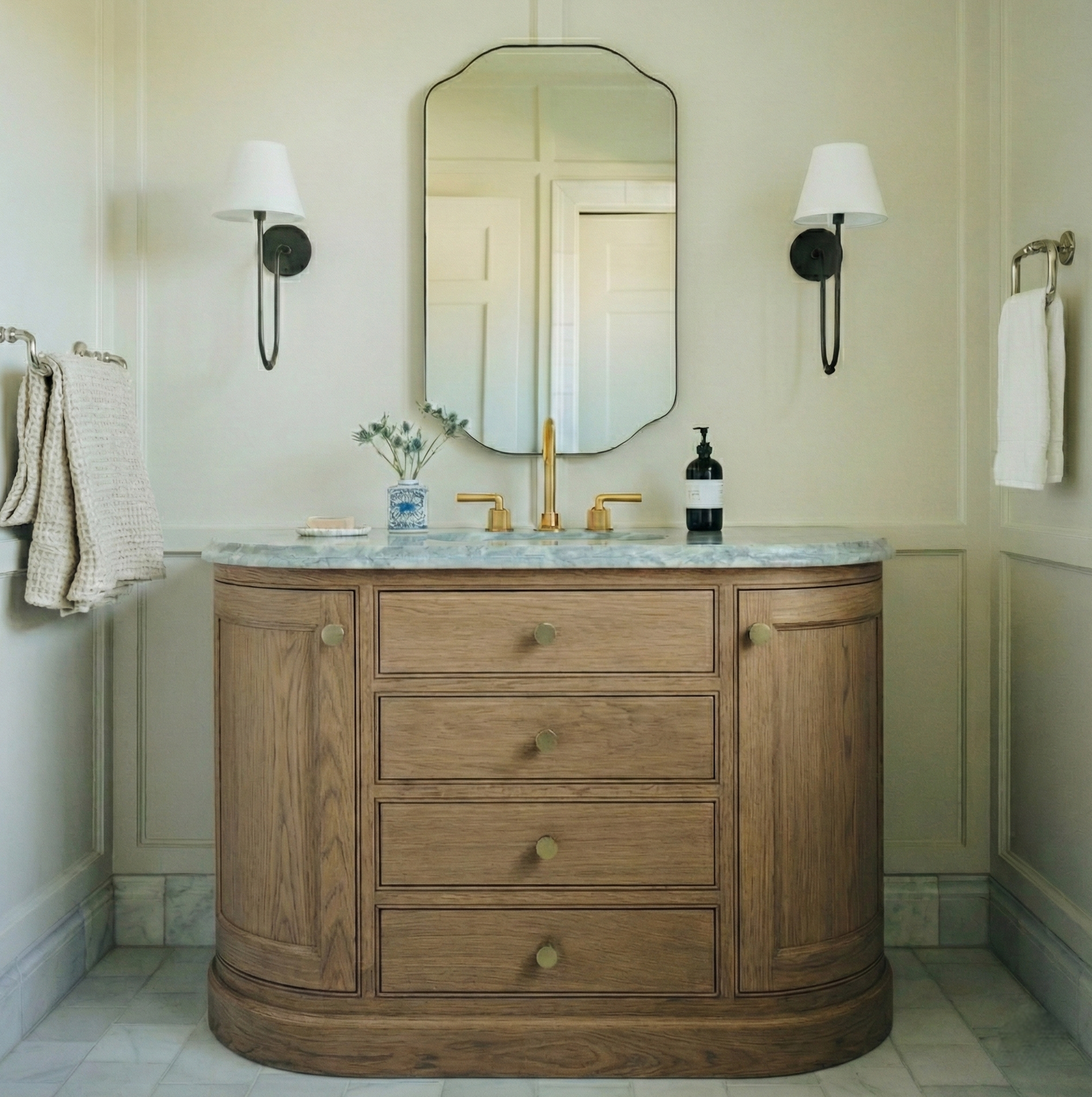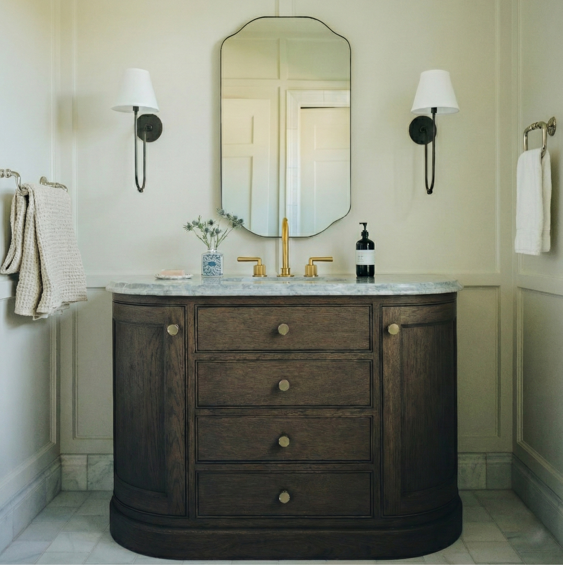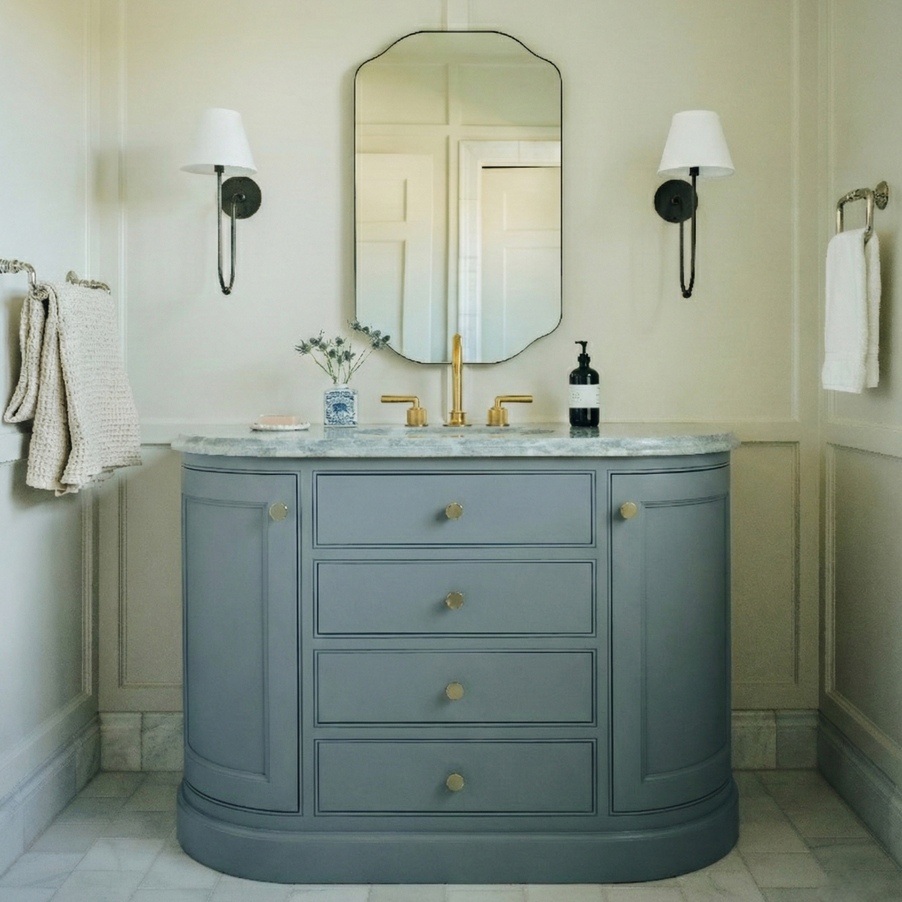 Defined by its rounded silhouette, the Glen Vanity serves as a stunning centerpiece in any bathroom. Available in a 48" size and available in all Stoffer Home Cabinetry Classic Line finishes, the Glen Vanity offers elevated craftsmanship and effortless versatility.