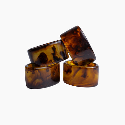 Elevate your table with these Tortoise Shell Napkin Rings. Each ring features a unique design, adding a sophisticated, timeless touch to any setting, perfect for both formal and casual occasions. Sold in a set of 4.